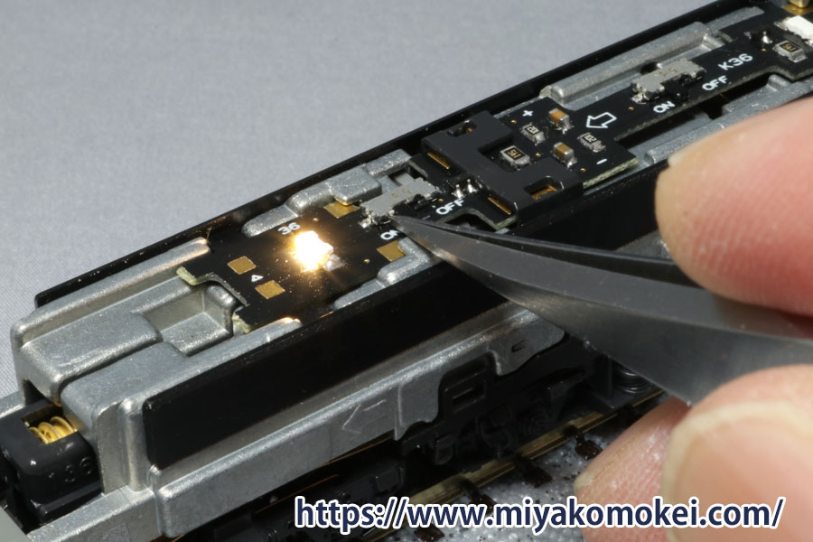 ・ON-OFFスイッチを搭載。重連時の次位機などの再現にも。