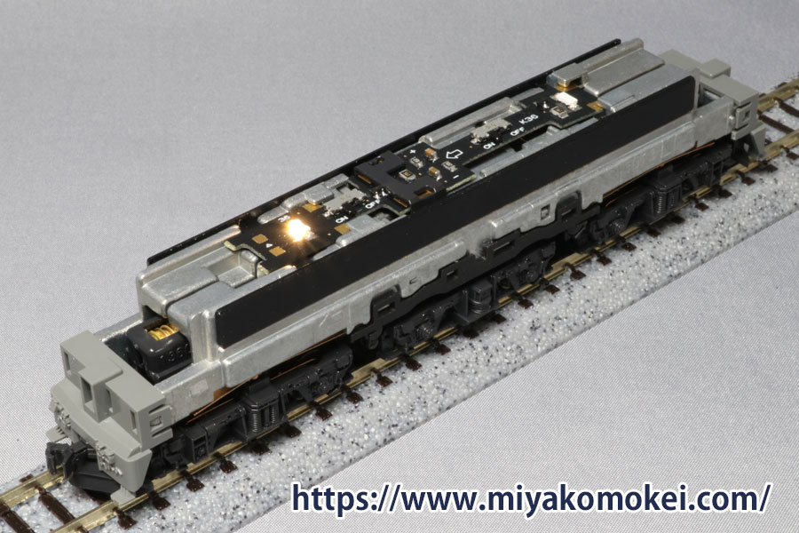 また、ON-OFFスイッチが付いていますので、実車同様、重連の次位機のヘッドライトをOFFにしてお楽しみいただけます。もちろん、単機でヘッドライトを消灯した国鉄時代の再現も。